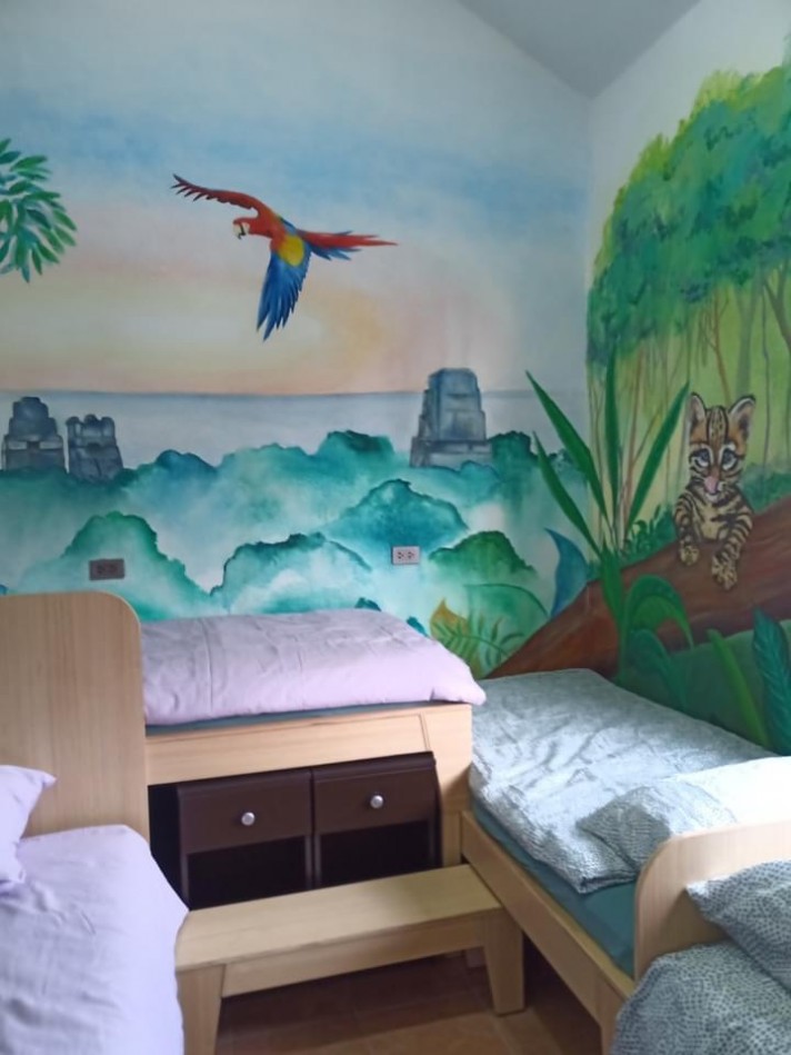 In het patiëntenhuis is nu elk van de 16 kamers geschilderd volgens een bepaald thema. Er zijn maar liefst 15 verschillende ecosystemen met flora, fauna and culturele aspecten van iedere gebied. Zo kunnen de kinderen een wereldreis maken zonder ook maar een stap buiten de deur te zetten. In iedere kamer hangt een blad met informatie over het gebied en met vragen voor kinderen. De kamer heeft een nummer dat de kinderen kunnen opzoeken op de wereldkaart en kaart van Guatemala bij de ingang van het huis.