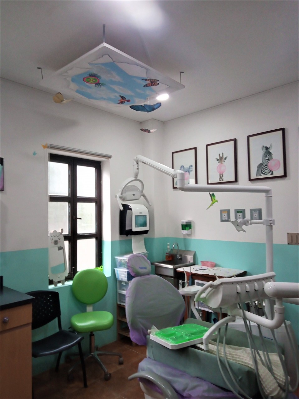 Kunstenaar Carin Steen is vanaf het begin betrokken geweest bij het artistieke gedeelte van de inrichting van de kliniek. De opening van kliniek was nogal vertraagd door de pandemie, maar dat gaf haar juist alle tijd om door de hele kliniek leuke dieren te schilderen, uiteraard allemaal met een schisis! In de tandheelkundige kliniek schilderde ze een aantal dieren en ook een installatie die aan het plafond hangt en een gat in het plafond voorstelt dat zich naar de hemel opent, compleet met vlinders, een vlieger en een vogel. Het geeft de kinderen iets om naar te kijken als ze in de tandartsstoel zitten.